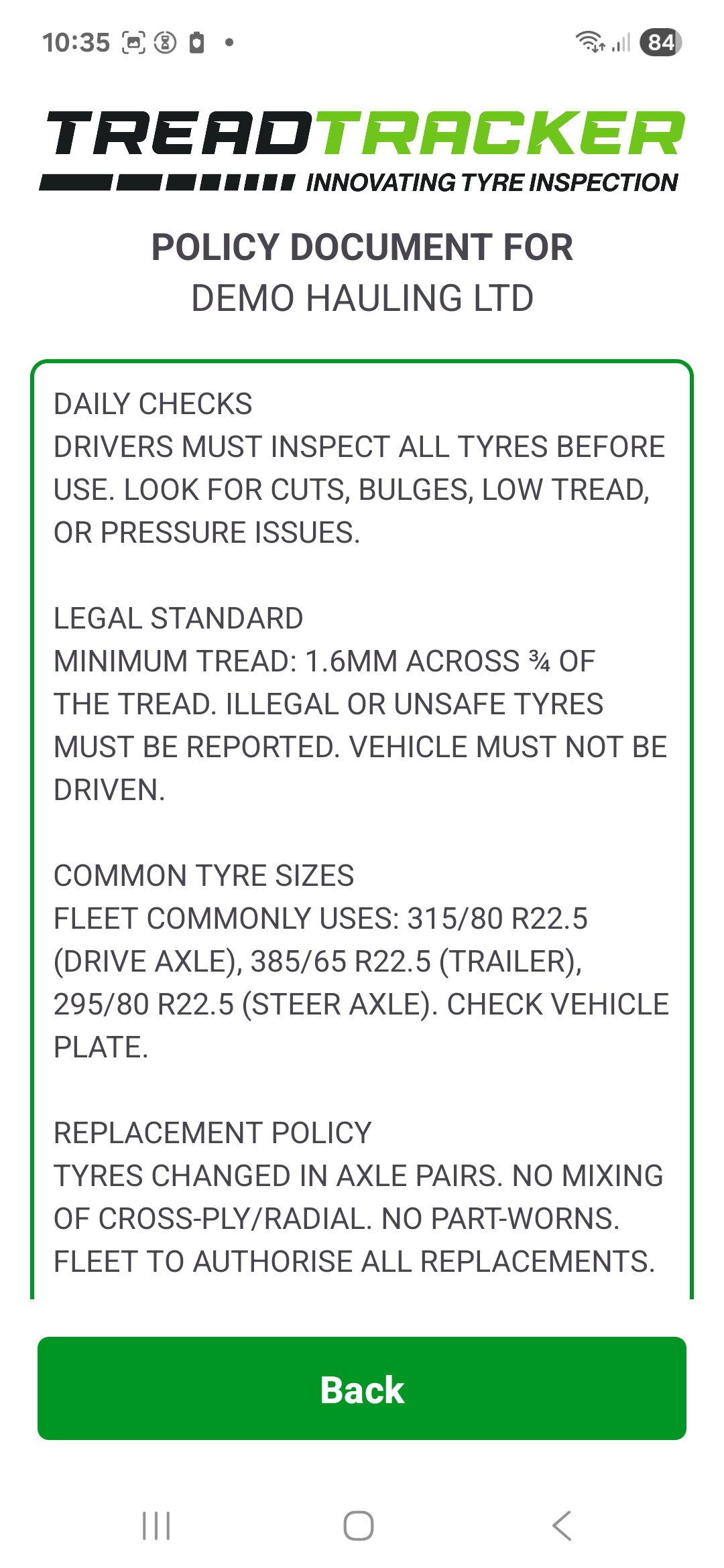 TreadTracker digitises the entire inspection process, eliminating manual paperwork and human error. Every report is securely stored, instantly shareable, and fully traceable, ensuring your fleet always meets industry compliance standards.